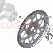 Das Schwungrad ist eine schwere, präzise ausbalancierte Scheibe, die an der Kurbelwelle des Motors befestigt ist. Es speichert Rotationsenergie und sorgt für eine gleichmäßige Kraftübertragung. In Fahrzeugen mit Schaltgetriebe bietet es die Reibfläche für die Kupplungsscheibe und ermöglicht sanfte Gangwechsel. Zudem dämpft es Motorvibrationen, erhält die Schwungmasse der Kurbelwelle zwischen den Arbeitstakten und greift beim Motorstart in den Anlasser ein. Schwungräder bestehen aus Gusseisen, Stahl, Aluminium oder Leichtmetalllegierungen. Schwere Modelle fördern Laufruhe, leichte verbessern Gasannahme und Beschleunigung.