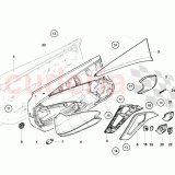Teilenummer 470867171A LH Handle ist der linke Innentürgriffeinsatz für den Lamborghini Aventador. Es handelt sich um ein Kunststoffteil, das durch Klammern und Schrauben befestigt wird. Der Griff dient zum Öffnen und Schließen der Tür vom Fahrzeuginneren aus.