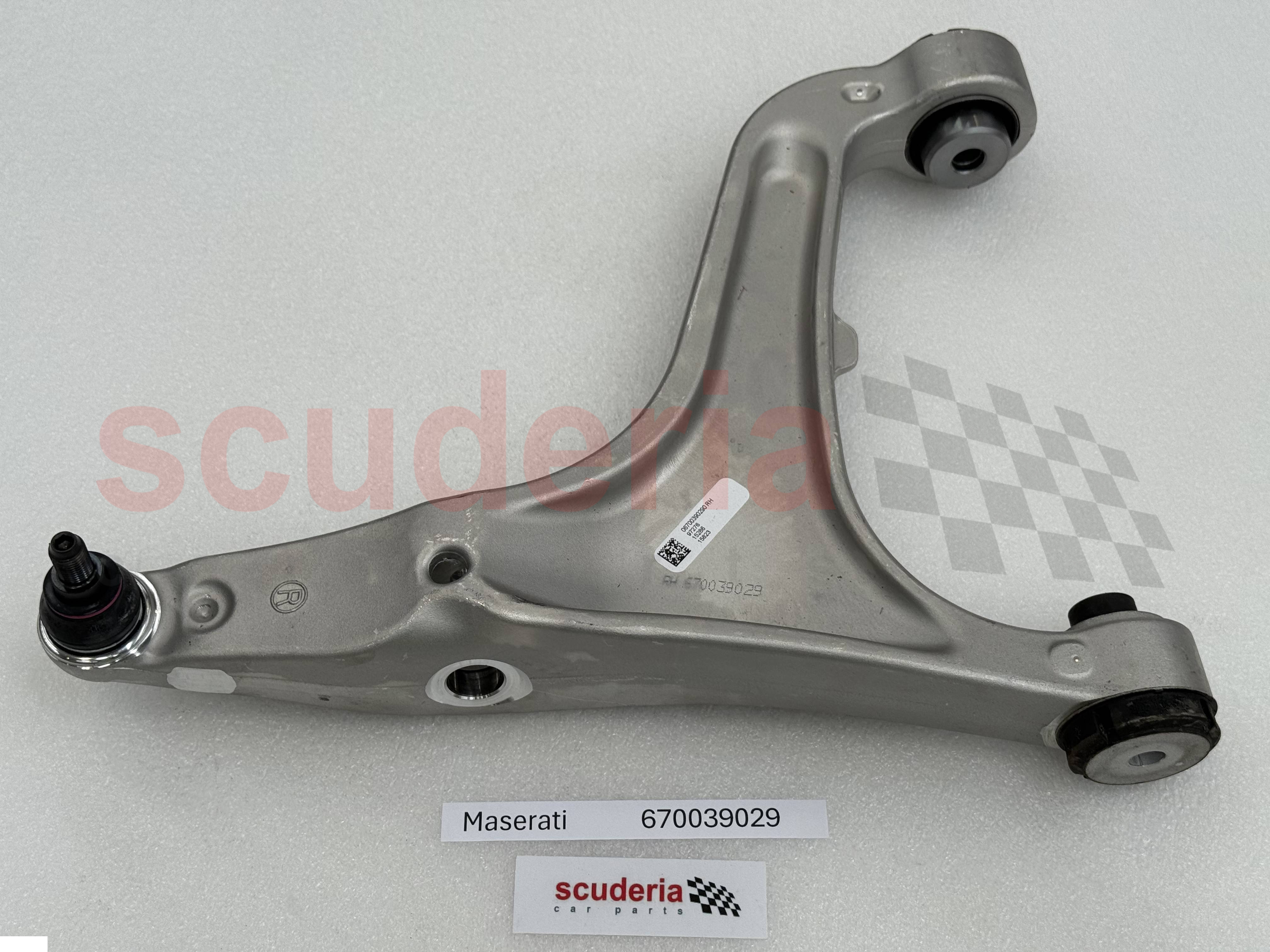 Maserati-Teilenummer 670039029 ist die rechte (rechte) vordere untere Hebelbaugruppe für den Maserati Quattroporte (2017+). Es ist eine wichtige Komponente des Vorderradaufhängungssystems und verbindet das Vorderrad mit dem Fahrgestell. Die untere Hebelbaugruppe ist dafür verantwortlich, das Gewicht des Fahrzeugs auf die Räder zu übertragen und den Sturz und Nachlauf des Rades zu steuern.